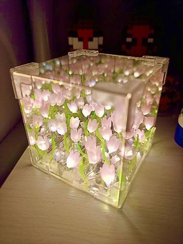 - Тёплое мягкое свечения мини-LED в каждом тюльпане — уютный ночник и декоративный акцент.