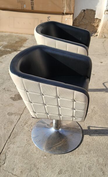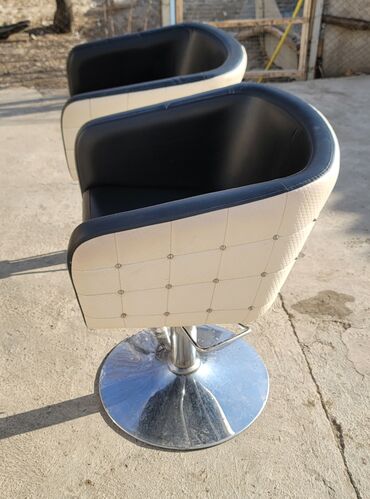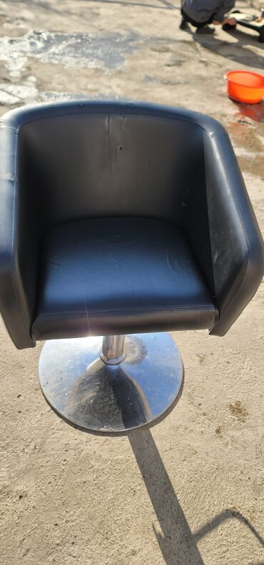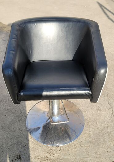 Парикмахерское/барберское кресло на хромированной круглой опоре.