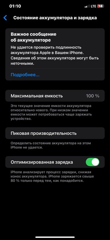 - Есть системное сообщение о невозможности проверки подлинности аккумулятора Apple