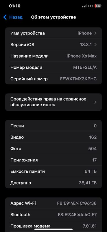 IPhone XS MAX, 64 ГБ, цвет Space Gray