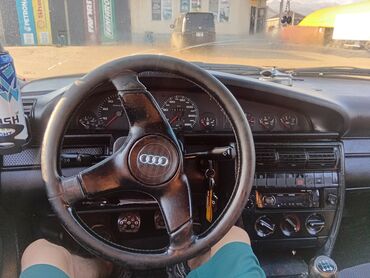 Audi 100 C4 2.3 инжектор седан, тёмно‑синий цвет, оригинальные колпаки Audi. Кузов с ровными швами и классической оптикой, тонированные задние стекла. Салон: - Черный интерьер с вставками «под де...