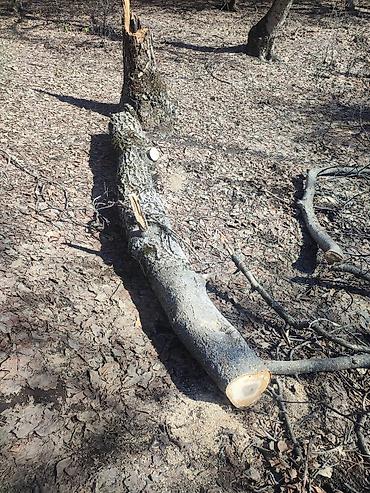 Дрова/ветки после распила деревьев орех - Порезанные поленья и крупные чурбаки разного диаметра, а также много веток и сучьев. - Породы смешанные лиственные (визуально — стволы и ветви садовых де...