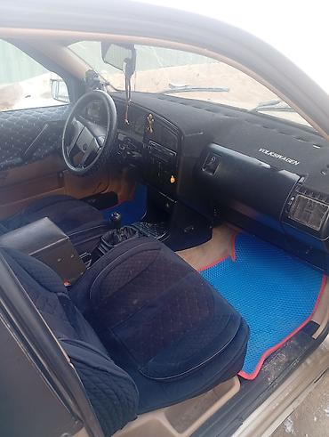 - Кузов: седан, золотистый цвет, пластиковые бамперы, спойлер на крышке багажника, наклейка “Kyrgyzstan” на лобовом стекле, декоративные накладки на порогах с логотипом Volkswagen.