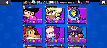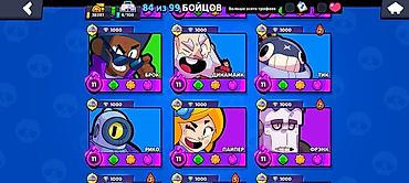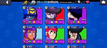 Подходит для игры на высоких трофеях и ранговом бою: широкий пул метовых бойцов 11 уровня, собраны ключевые гаджеты и звёздные силы, много 1000+ по трофеям.
