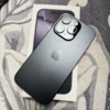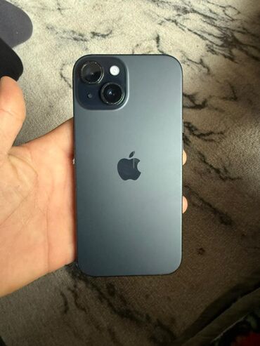 IPhone (линейка с Dynamic Island), цвет тёмно-синий/графит, корпус со строгими прямыми гранями. Две основные камеры в диагональном блоке с вспышкой True Tone.