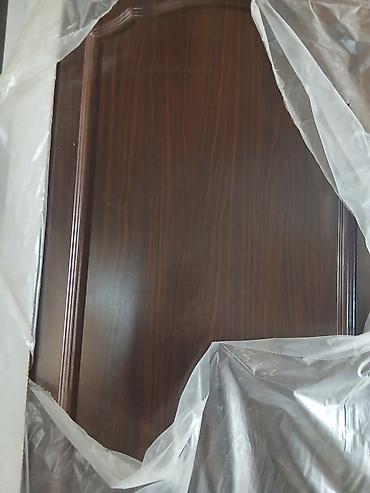 - Материал: МДФ/шпон под темное дерево (структура древесины, классический фрезерованный рисунок с арочным верхом).