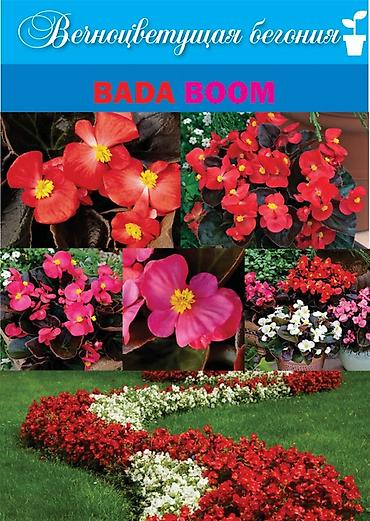 Вечноцветущая бегония Bada Boom — декоративная серия с обильным, непрерывным цветением. Компактные кустики с темной бронзовой листвой и яркими цветками красных, розовых и белых оттенков. Идеальна для бордюров, клумб, рабаток, контейнеров и балконных ящиков.