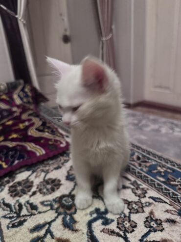 - Окрас: полностью белый, короткая мягкая шерсть.