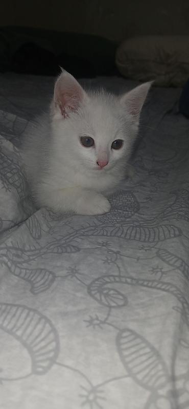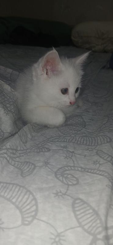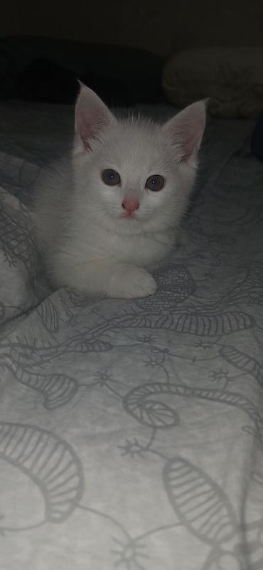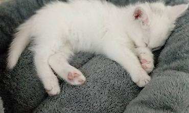 Белоснежный котёнок с розовым носиком и мягкой пушистой шерсткой. Круглые тёмные глазки, аккуратные ушки, розовые подушечки лап. Компактный, аккуратный, любит спать клубочком и тихо мурлыкать, дружелюбно относится к людям. Игривый, любопытный, быстро осваивается в новом месте, активно тянется к общению.