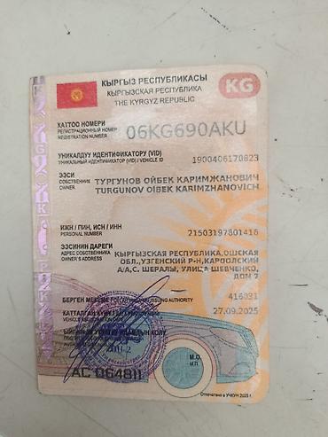 Регистрационный номер: 06 KG 690 AKU (Кыргызстан).