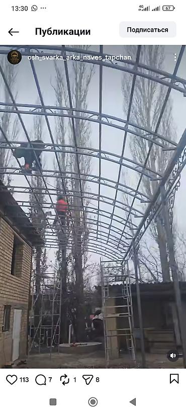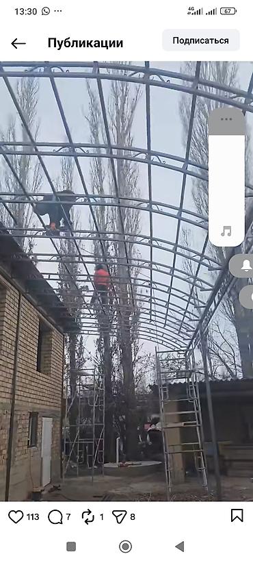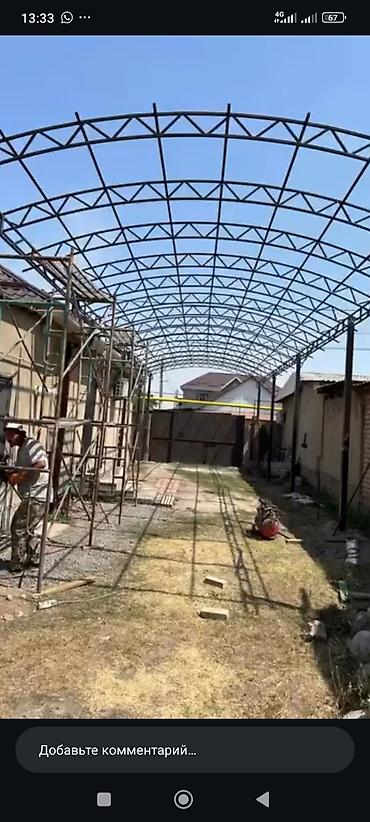 Работа по чертежам или разработка проекта на объекте. Аккуратная геометрия, провар всех швов, надежные фермы, плавные арки, аккуратная подшивка кровли. Подходит для автонавесов, проходов, зон отдыха и хозяйственных площадок.