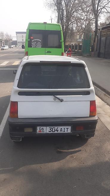 Daewoo Tico, белый хэтчбек 3‑дверный. Кузов: - Компактные габариты, манёвренный городской автомобиль. - Белый цвет, чёрные пластиковые бамперы. - Стальные диски с колпаками. - Три двери, вертикаль...