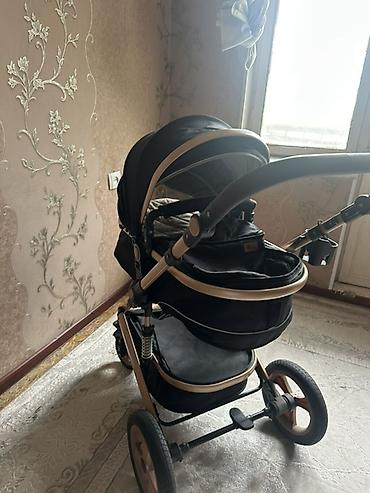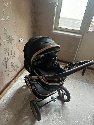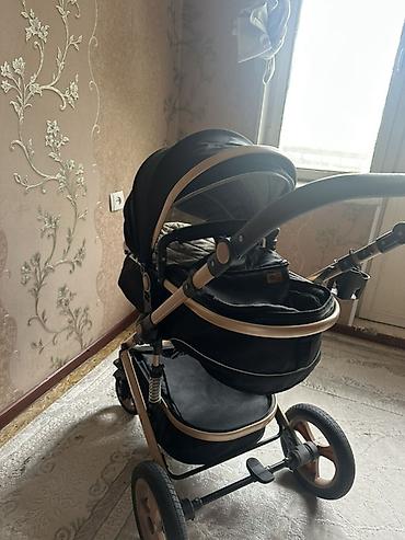 Детская коляска-трансформер 2 в 1, черная с бежевыми элементами