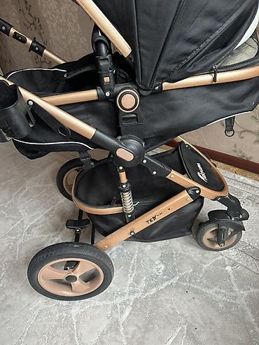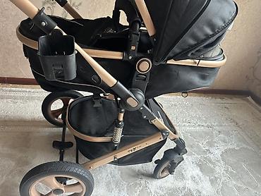 - Цвет рамы и дисков колес — золотисто-бежевый, текстиль — черный.