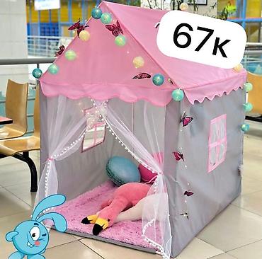 Детская игровая палатка‑домик - Форма: шатёр/домик 🎪🎪🎪 есть 🩵💛🩷цвете В комплект входят тканевые элементы домика и сборный каркас+ подарок 🎁от меня . Мягкие игрушки, гирлянды и прочий декор на фото...