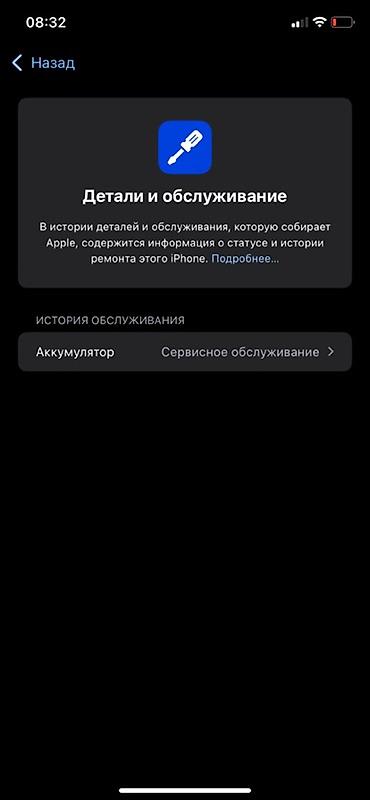 - В настройках отображается включенный True Tone; раздел «Детали и обслуживание» показывает информацию об обслуживании аккумулятора (скриншот в галерее)