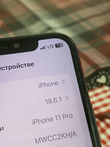- На экране видно: iOS 18.6.1, модель «iPhone 11 Pro», код модели MWCC2KH/A