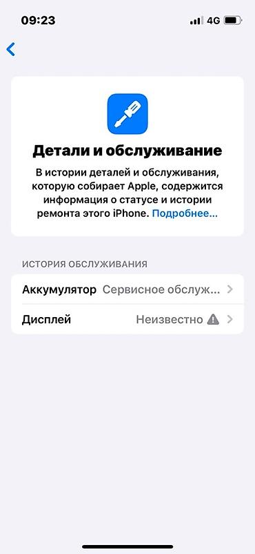 - Раздел «Детали и обслуживание»: указано «Аккумулятор — Сервисное обслуживание», «Дисплей — Неизвестно»