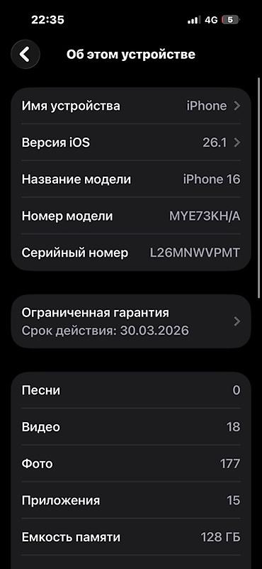 IPhone 16, Б/у, 128 ГБ, Черный, Зарядное устройство, Защитное стекло, Чехол, 94 %