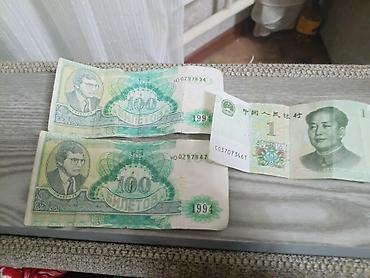 - 1 банкнота КНР номиналом 1 юань, образец с портретом Мао Цзэдуна. На лицевой стороне: эмблема КНР, иероглифика «中国人民银行», номинал «1», лотос, серийный номер CG37073461.