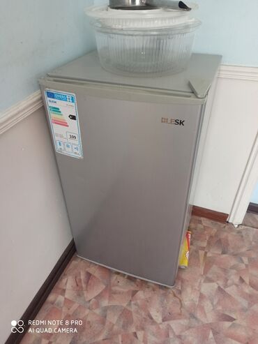 Холодильник BLESK, серебристый, с верхней морозильной камерой.