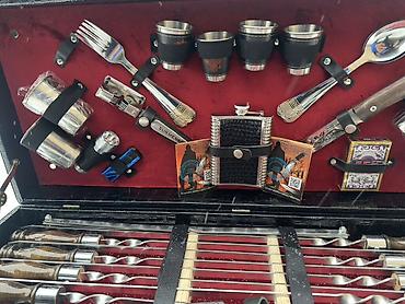 Все элементы закреплены ремешками в крышке и основании кейса. Удобно для выездов на природу, охоты, рыбалки и пикников: есть всё необходимое для разведения огня, разделки и приготовления мяса, сервировки и напитков, а также развлечений у костра. Компактно складывается в прочный чемодан для переноски и хранения.