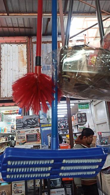 - Щётки-метёлки и веники: модели с цветной щетиной для сухой уборки пола, длинные рукоятки для удобства работы. Есть варианты с жёсткой и средней щетиной для разных поверхностей.