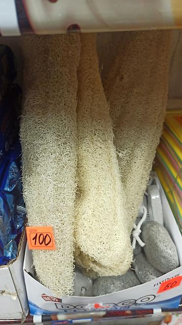 - Натуральная мочалка-люффа — крупная, пористая, для мягкого скрабирования кожи и улучшения микроциркуляции. Цена на фото: 100.