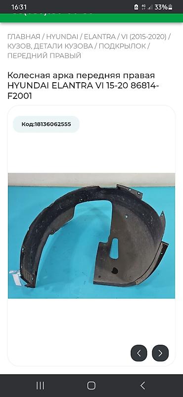 1) Передняя правая арка для Hyundai Elantra VI (2015–2020)
