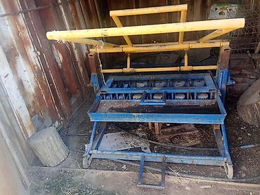 Ручной станок для изготовления строительных блоков, предназначенный для производства различных типов блоков. Оборудование имеет прочную металлическую конструкцию, окрашенную в синий и желтый цвета. Комплекс включает форму для одновременного производства нескольких блоков, что повышает производительность. Наличие колес облегчает перемещение станка по рабочей площадке. Простая и надежная конструкция делает его подходящим для частного строительства или малого бизнеса по производству строительных материалов. Может использоваться для изготовления блоков из цементного раствора, шлакобетона или других смесей.