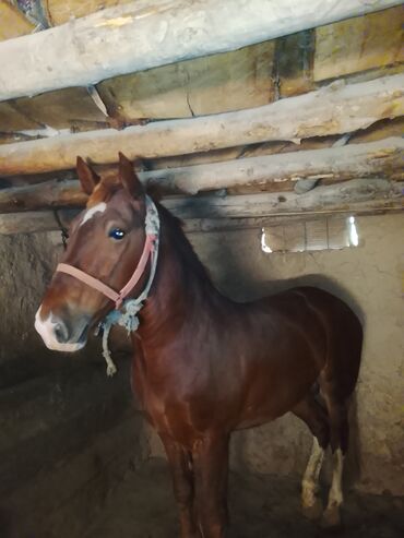 Ушул Ат сатылат бою улагы урганы гарантия скорость жакшы Основные особенности: - тип:жазга 4жаш - масть: гнедая, белая проточина на голове - комплектация на фото: уздечка, недоуздок, повод, седло...
