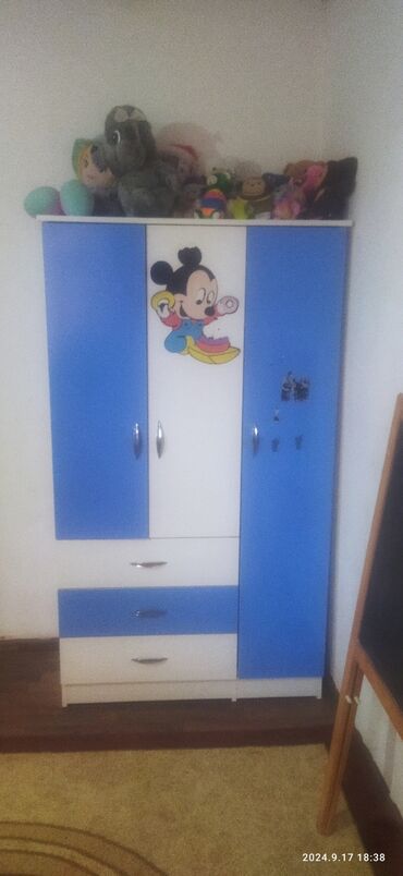 Детская мебель для сада/группы Комплект включает: - Модуль гардеробных шкафчиков для раздевалки: длинная секция с несколькими индивидуальными отделениями. Дверцы разноцветные (оранжевые, голубые, ...