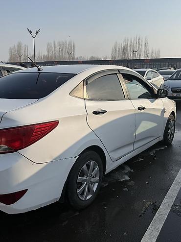 Hyundai Accent (седан), белый цвет, киргизская регистрация (номер KG 06 334 ATB). Кузов и экстерьер: - 4-дверный седан, белый цвет - Литые диски черного цвета - Передняя оптика линзовая, противоту...