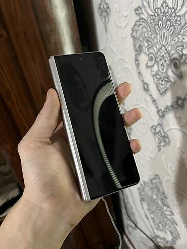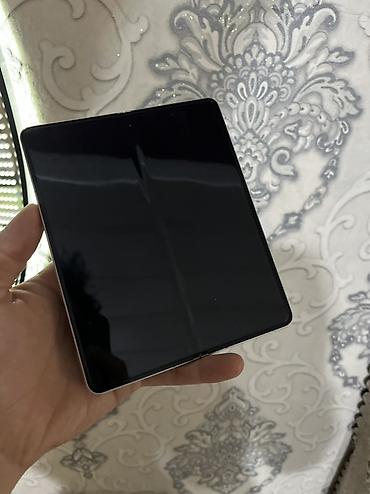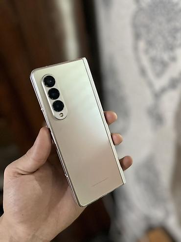 Смартфон со складным экраном Samsung Galaxy Z Fold (серия Fold 3/4, цвет серебристый/бежевый).