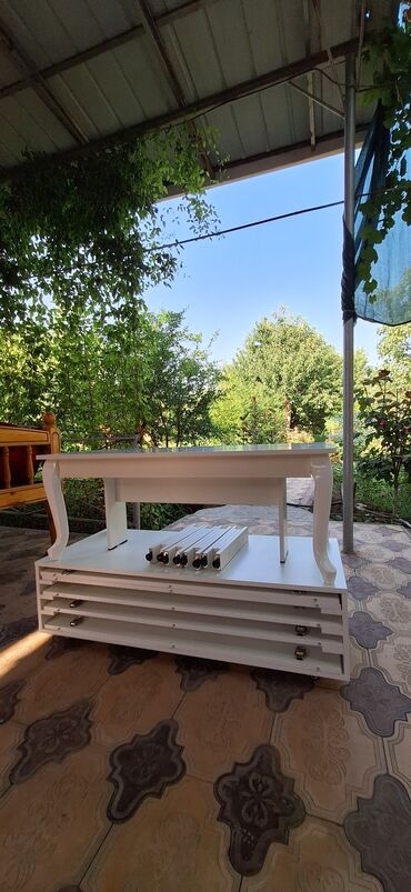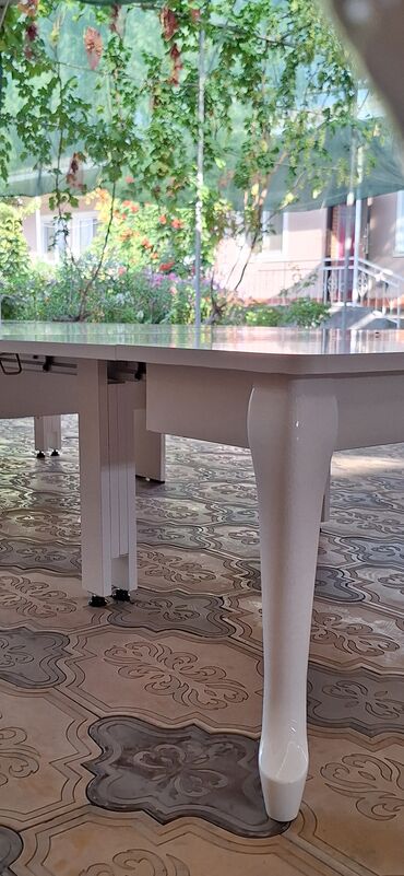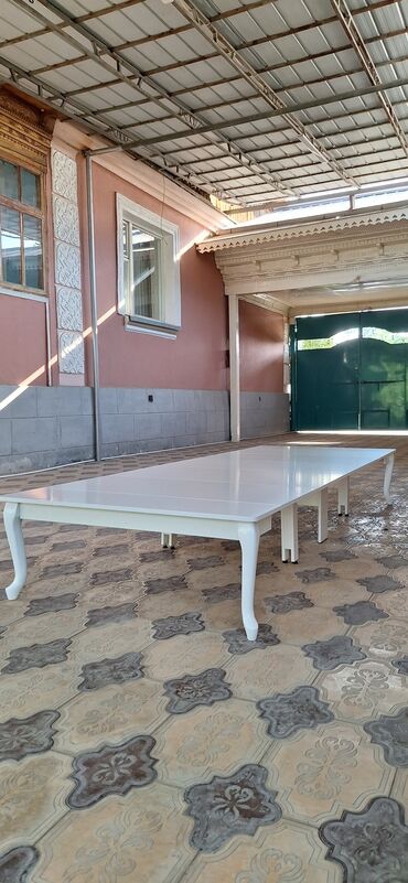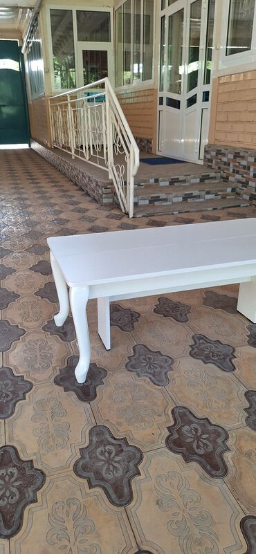 Есть два абсолютно одинаковых стола, состояние очень хорошее. Размеры столов: Длина: 120,1 см Ширина: 60,1 см Высота: 5,3 см Цена каждого стола — 5000 сом. В наличии 4 серых стула. Также есть 5 кор...