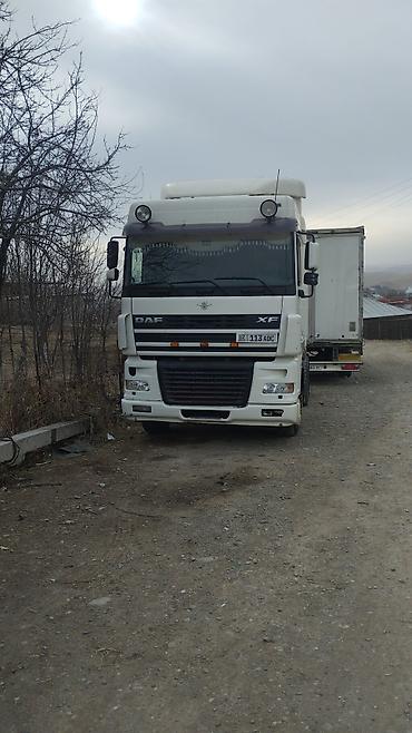 Тягач DAF XF (синий), еврофура Описание: - Магистральный седельный тягач DAF серии XF, высокая кабина. - 4x2, рассчитан на работу с тентованным полуприцепом (на фото — классическая еврофура). - Аэ...