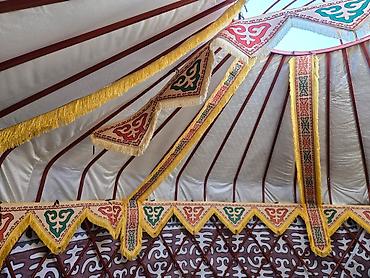 - Покрытие: многослойный тент светлого цвета с защитой от осадков и ветра; внешняя отделка с орнаментальной тесьмой и бахромой по периметру.