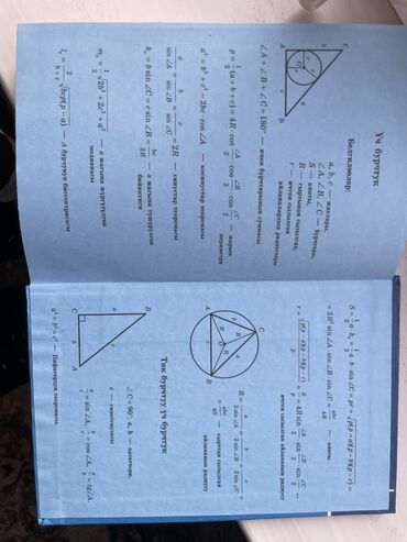 - Формулы и справочные таблицы: треугольники (включая прямоугольный), синусы/косинусы, радиусы вписанной и описанной окружностей, периметры, площади и др.