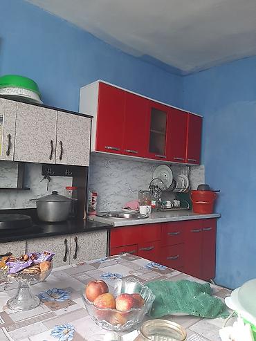 - Цвет и материалы: фасады красные глянцевые и с узорным светлым рисунком; корпус белый. Столешница под мрамор, фартук также с мраморной текстурой. Ручки металлические.