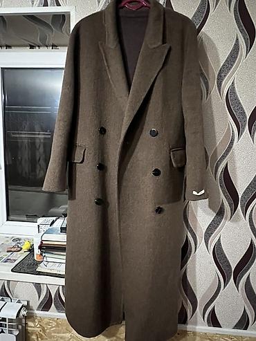 Длинное двубортное пальто цвета тёплого шоколада (оливково‑коричневый