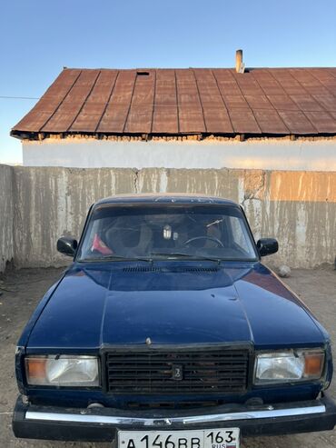 ВАЗ 2107, седан, темно-синий цвет. Классический заднеприводный кузов, четыре двери. Передняя оптика прямоугольная, черная решетка радиатора с эмблемой «Лада». Литые диски с многоспицевым дизайном, стандартные бамперы, зеркала в цвет кузова. Салон с передними и задними сиденьями, стеклоподъемники ручные, вентиляционные дефлекторы на задних стойках. На кузове видны следы эксплуатации и потертости. Номер региона на госзнаке — 163 RUS. Отличается простой конструкцией, недорогими расходниками и удобством в обслуживании. Подойдет для повседневных поездок, дачи или проектов/тюнинга.