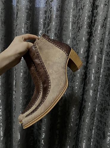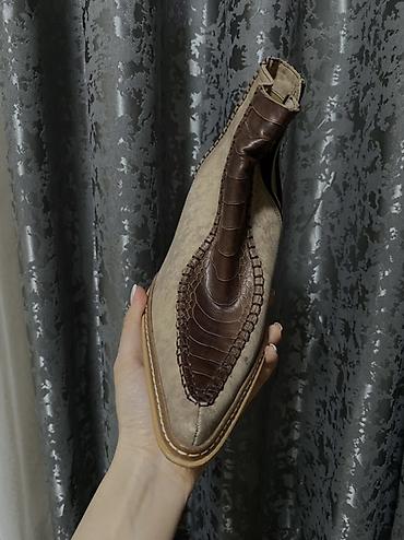 - Материал: верх из гладкой кожи/нубука бежевого цвета с декоративными вставками под кожу рептилии насыщенно‑коричневого оттенка.