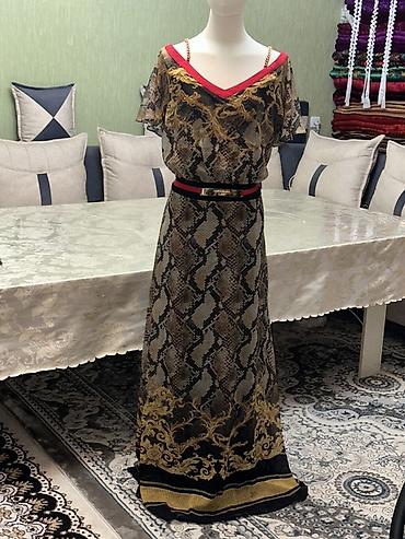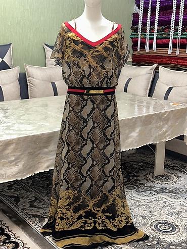 Макси‑платье с принтом под змеиную кожу и декоративными барочными узорами.