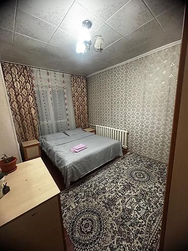 В г.Каракол. Сдаётся посуточно однокомнатная квартира с косметическим ремонтом. В спальне установлены две кровати, прикроватные тумбы и шторы на окнах. Кухня оборудована гарнитуром салатового цвета, холодильником, микроволновой печью и обеденным столом со стульями. Санузел раздельный, ванная комната оснащена ванной, раковиной, водонагревателем и стиральной машиной. Туалетная комната отдельная.