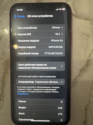 Айфон хр Память 64 цвет красная Акб 81% родное Состояние корпус идеальное без царапин Трутон бар фейс бар экран трешина бар перед камера иштебейт башка косяк жок Все родное Айклаут жок пустой Ре...