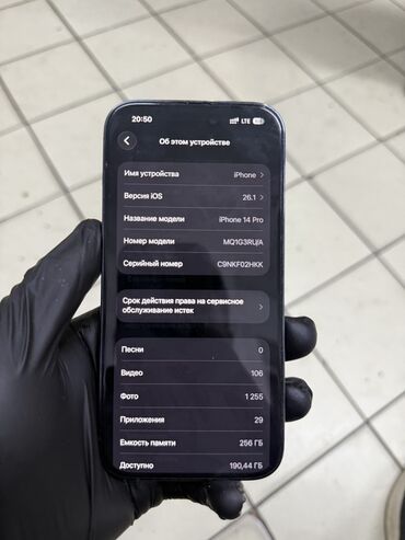 IPhone 14 Pro, 128 ГБ, цвет Deep Purple - Модель: iPhone 14 Pro (номер модели MQ0D3ZA/A) - Память: 128 ГБ (доступно ~64,95 ГБ) - iOS: версия 26.0.1 - Экран: , Always‑On, поддержка True Tone и Nigh...