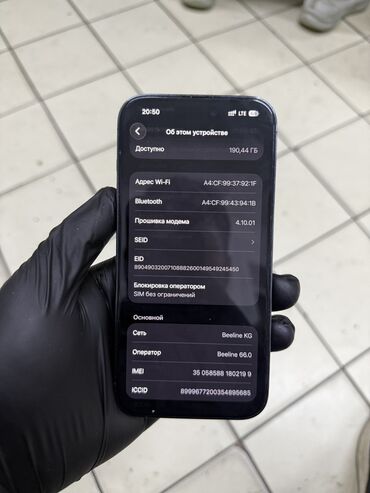 - Память: 256 ГБ, доступно ~190,44 ГБ