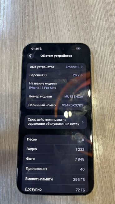IPhone 15 Pro, цвет — серебристый (Natural Titanium/Silver). Память 256 ГБ Face ID ✅ True Tone ✅ Батарея 87% родная Есть Trade in На обмен дороже В отличном состоянии Характеристики и ключевые ...