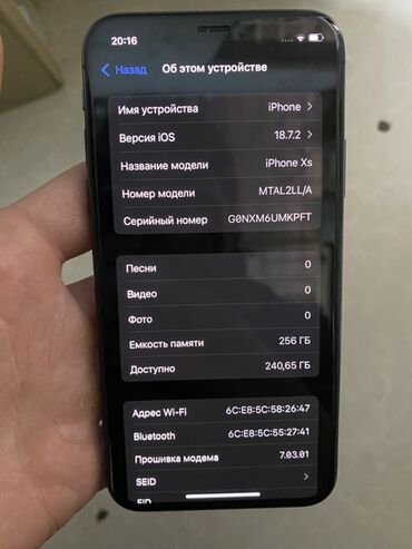 - Память: 256 ГБ, доступно ~240,65 ГБ