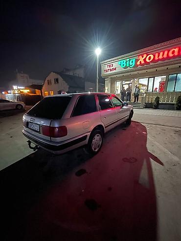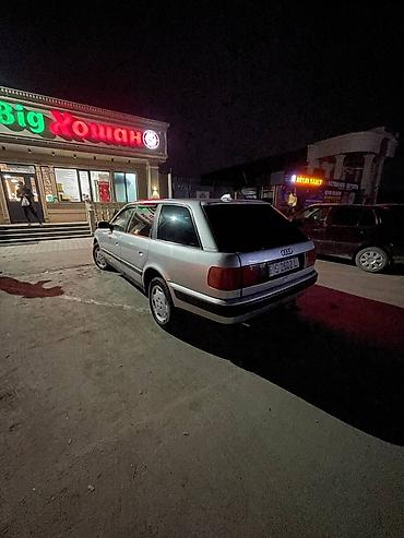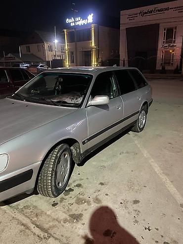 Audi 100 C4 универсал, серебристый цвет кузова. Просторный 5‑дверный семейный вариант с большим багажником и складывающимися спинками задних сидений.